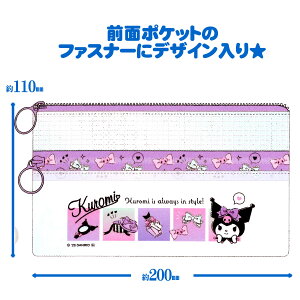 ・クロミのクリアダブルファスナーポーチが新登場! ・使い分けて収納できてとっても便利♪ ・メッシュ繊維入りPVC★ ・前面ポケットのファスナーにデザイン入り! ・文具や小物を入れて使ってね♪ ・他のキャラクターもございます。 【
