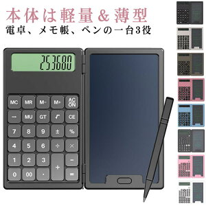 【電卓、メモ帳、ペンの一台3役】電卓と電子メモが一つになっている超便利文房具です。左側:一般的な計算から学習、事務作業まで様々な場面で満足いく機能を備えています。右側:電子メモパットを搭載、電卓で計算した内容や式を電子