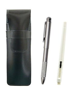 スリム牛革ペンケース黒 ペン型消しゴム 白とオール金属回転式ボール&シャープ ノッチグリップセット T23-ASBMC46W-BSMM-2 2セット入り 牛革ペンケースとペン型消しゴム(白軸)と多機能ペンのセット...