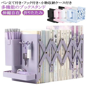伸縮 ブックスタンド 卓上収納 ペンケース 収納ケース フック付