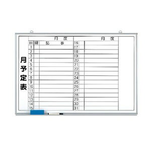 商品名大平産業 月予定ホワイトボード仕様製品コードNH456サイズH450mm×W600mm付属品・ マグネット×2・ ホワイトマーカー(黒・赤×各1)・ ペントレイ・ 吊り金具