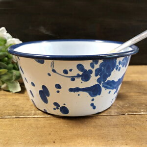 タイの屋台やレストランで必ず見かける ホーロー食器の“ホワイトシリーズ”に ドロッピング柄で珍しい色が登場です。 レトロな雰囲気のネイビーカラーの縁どりは 飽きも無く根強い人気シリーズです。 食器使いはもちろん小物入れでも