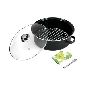 石焼鍋 焼き芋器 ホーロー石焼きいも器 両手鍋 鍋焼きうどん鍋 石付き IH200V・ガスコンロ対応 多機能鋳鉄鍋家庭用/業務用 防錆 速い熱伝導と (28cm) -