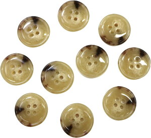 ●【ボタンの形】四つ穴ボタン 【材質】プラスチック●【カラー】ベージュ&ブラウン 【模様】水牛の角のような模様●【特徴】糸通し用の穴が四つ空いた、衣類に合わせやすいボタンです。程よくツヤ感があります。...