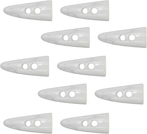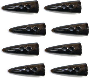●【全長】約5cm 【側面のサイズ】約18mm 【穴のサイズ】直径約6mm 【厚み】約15mm●【数量】8個入り●【カラー】ダークブラウン 【模様について】水牛の角のような模様●【材質】樹脂●【用途】紐通し用の穴が二つ空いた、水牛調のトグル
