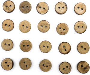 ●【サイズ】直径約11.5mm 【数量】20個入り●【ボタンの形】二つ穴ボタン●【材質について】ココナッツの殻を使用した、ナチュラル素材のボタンです。●【カラー】表面がライトブラウン、裏面がダークブラウンです...