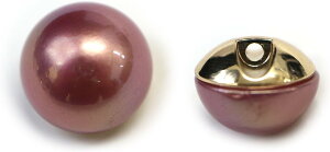 【カラー】パープル●【材質】樹脂・金属 【特徴】表面にオーロラ加工が施されています。●【形状】半円状のパールボタンです。ゴールドの台座付きです。糸通し用の穴が一つ空いています。