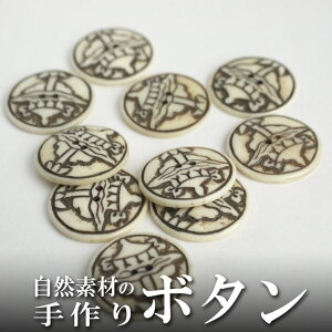 ギフト対応 水牛の骨を素材にひとつひとつ手彫りされた味のあるボタン10個入りセットです。 シンプル&ナチュラルなテイストなので、色々なものにコーディネートできそう! チベットの八吉祥紋様「タシ・タゲ」のひとつドゥク(宝傘)