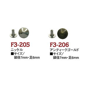 サイズ:頭径7mm×足5mm素材:真ちゅう入り数:20組入り、打ち具なし生地の縫い合わせの補強だけでなく、洋服やバッグに鋲(スタッズ)を打ちつけるなどのワンポイントの飾りにも大活躍です!