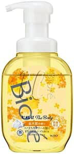 しっとりしなやかな洗いあがり。 保湿成分スイカズラエキス配合。 香りは、オスマンサス(和名:きんもくせい)とジャスミンを基調として上品な香り。