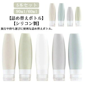 【詰め替えボトル】【5本セット】【シリコン製】【90ml / 60ml】旅行や持ち運びに便利な詰め替えボトル。絞れるソフトシリコン素材で液体も最後の一滴まで使いきれます数日の旅行にも便利なサイズの5本セットです大きな注ぎ口でこぼさず詰