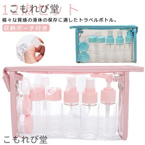 ボトル、ポンプボトル、スプレーボトル、クリーム容器などのトラベルボトル9点セット。様々な質感の液体の保存に適したトラベルボトル。ボトル、ポンプボトル、スプレーボトル、クリーム容器タイプがあります。いつものシャンプーやコ