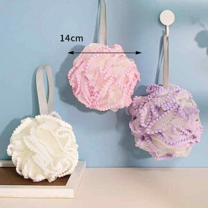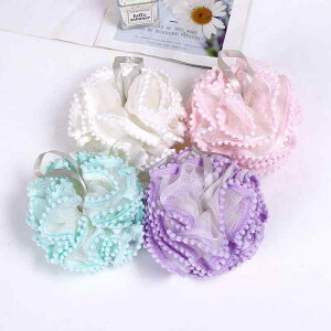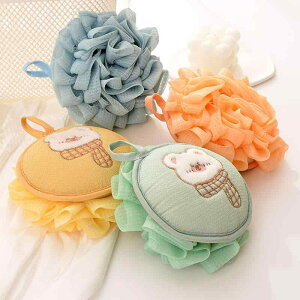 浴用ボール レディース 大判 浴花 ボディスポンジ 柔らかい かわいい パステルカラー 4色・素材: ポリエチレン(PE)・対象: ユニセックス・カラー: ライトブルー.ライトブラウン.ライトピンク.ブラック/グレー