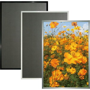 イレパネスタンダードシリーズの定番品!イラスト、ポスター、POP等の入れ替えが簡単なアルミフレームパネル。展示会やショップの商品ポスターの掲示などに使いやすい低コスト軽量な薄型フレームです。 透明フィルムと発泡スチロールに