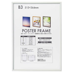 【商品解説】・B3判・アルミ製ポスターフレーム・写真、ポスター、メニューボード、版画額装などに幅広く使用できます・裏面にタテヨコどちらでも吊り下げできるフック付き(*壁に取り付けるフック・金具は付属していません)...