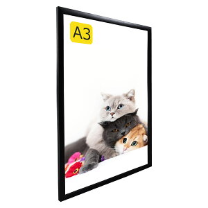 商品詳細 外寸寸法 323mm×446mm×20mm ポスター寸法 297mm×420mm 画面寸法 267mm×390mm フレーム アルミ押出し材、幅:28mm、厚:20mm 色 黒色 重さ 1.7KG 使用素材 フレーム:アルミ...