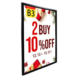 商品詳細 外寸寸法 390mm×541mm×20mm ポスター寸法 364mm×515mm 画面寸法 334mm×485mm フレーム アルミ押出し材、幅:28mm、厚:20mm 色 黒色 重さ 1.9KG 使用素材 フレーム:アルミ...