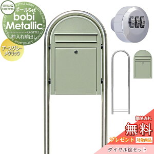 bobi ポスト+ラウンドポール+ダイヤル錠セット アースグレーメタリック 前入れ前出し ボビポスト ポールセット 鍵付き 北欧 おしゃれ かわいい レトロ アンティークサイズ(mm)【ポスト本体】 幅318高さ5