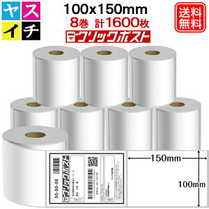 商品名 感熱紙ロール サーマルラベル クリックポスト用 感熱紙 シール 100mm×150mm 業務用大容量 200枚 x 8巻 計1600枚 感熱ラベル 感熱ロール紙 規格 仕様: 200枚/巻 x8ロール...