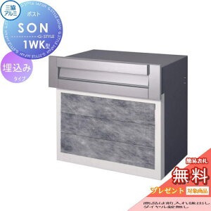 SON-1WK型 2ブロックタイプ ダイヤル錠無しタイプ 郵便ポスト 埋込みポスト 送料無料 三協アルミ 外構工事 エクステリア工事 埋込 埋め込み 後ろ出しサイズ幅410奥行き333高さ400mm(ツマミ含む)材質【本