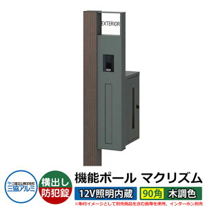 機能門柱 機能ポール マクリズム 12V照明内蔵【90角・木調色】 横出し(簡易錠)セット 多様な住宅スタイルにフィットする高機能な機能ポール! 販売条件 ◆詳しくはこちらをご確認ください カラー ポールカラー:...