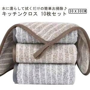 ンプルで飽きの来ないデザインのキッチンタオル 10枚セット 超吸水水に濡らしてサッと拭くだけの簡単お掃除♪「油汚れ」も「醤油やソース汚れ」もしっかり落とす◎吸水性抜群!吸水性がよく乾きやすい素材を使用しています。特殊な繊維