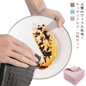 上質のワッフル生地!キッチンクロス・5枚セット【驚異の吸水性!】・強力吸水のマイクロファイバー!・衛生的な上質素材!・柔らかい極細繊維!【汚れも簡単に落とせる!】・頑固な油汚れもさっとひと拭き!・防臭素材で不快感軽減...