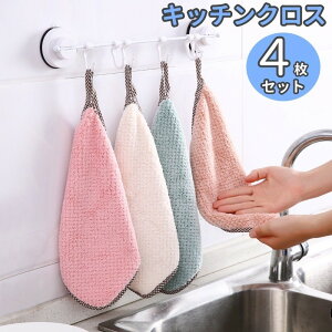 ふわふわで肌触りが良い♪ 便利なループ付きキッチンクロス4枚セットです。 【サイズについて】 画像をご参照ください。 【カラーについて】 生産ロットにより柄の出方や色の濃淡が異なる場合がございます。 お使いのモニターや撮影時の