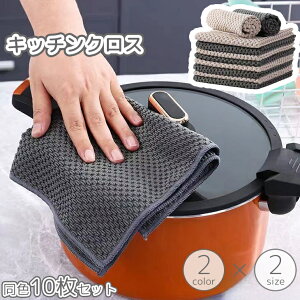 吸水力抜群! マイクロファイバー素材のキッチンクロス10枚セット♪ 食器拭きや台拭きにぴったりで、台所掃除も快適◎ 油汚れもサッと拭き取る便利な布巾です! 【サイズに...