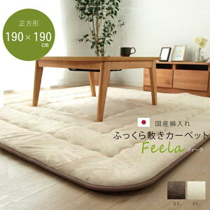 サイズ約190×190cm カラーベージュ/ブラウン 組成表地=ポリエステル100%【短毛マイクロファイバー】 裏地=ポリエステル100%(ピーチスキン) 中材=ポリエステル100%【国産固綿40mm】...