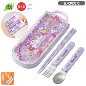 クロミのスプーン・フォーク・お箸の3点セットです。スライド式の収納ケースは指で引き出して開けやすく、分解できるのでお手入れも簡単。かわいいデザインでランチタイムを楽しく♪サイズケース=約19.8×7....