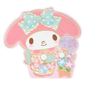 キ はがき 絵葉書 挨拶状 可愛い贈ってももらっても楽しいかわいいグリーティングカードこちらはマイメロディがいちご柄の浴衣姿でうちわを持っている、夏らしくかわいいデザインです