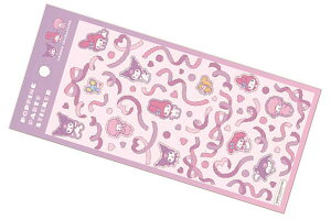 サンリオの人気キャラクター、マイメロディのステッカーです! クロミやピアノちゃんも登場! こちらの商品は耐水、耐光性のあるステッカーです。 屋外はもちろん、スマホ、PC、スーツケースなど様々なところに貼ってお楽しみ下さい...