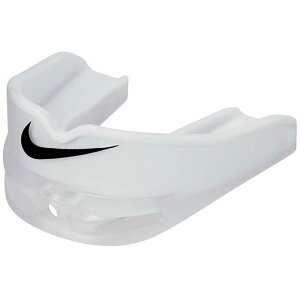 ナイキのマウスピース。熱湯を使用した熱成形が可能。エンボス加工されたスウッシュロゴ。縦5.98cm×横5.05cm×高さ2.56cm本体:100% エチレン酢酸ビニル。スティック:100% ポリプロピレン