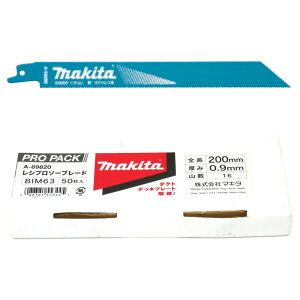 マキタ レシプロブレード BIM63。主要切断材料 鉄・ステンレス用・ダクト・デッキプレート。1インチ当たり山数 16。全長 200mm。厚み 0.9mm。入り数 50本。適合機種 マキタ 充電式レシプロソー...