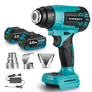【コードレスヒートガン】このポータブル小型ヒートガンは温度調整機能とLCDディスプレイを搭載しており、5段階の風量調整と5050℃までの温度調整が可能です。また、風速と温度を2段階に設定できます。強モ...