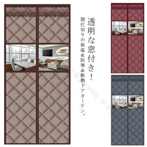 のれん 玄関 ドア用 マグネット式 暖簾 間仕切りカーテン 冷気遮断 断熱カーテン 透明窓 自動で閉まる ドア 防寒カーテン 間仕切り カーテン 簡単取付 防水 保温 防風 中綿入り 玄関 冷暖房効率アップ...