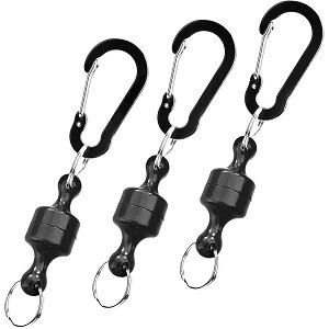 【仕様】パッケージは以下を含みます:3個×マグネットリリーサー(カラビナ+尻手ロープ付き)サイズ:全長約12cm 、磁性体の長さ5.6cm、最長伸び1.5m尻手ロープ、耐荷重は約1.5kg、重さ:約2...