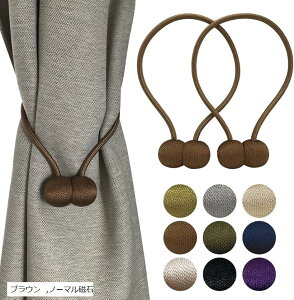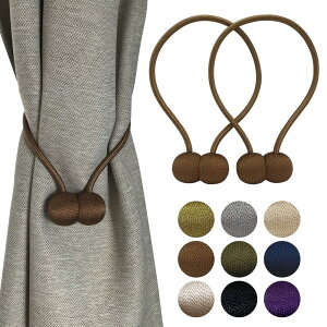 カーテンフック2個セット。全長さ:約52.3cm、重量:約54.8g(2個)。カラー:ブラウン。 強力な磁石を採用、接続部分はポリエステル糸で織られています。耐食性と耐久性を持っています。 穴あけ不要、壁を傷つけません。カーテンに巻い...