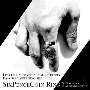幸せを運ぶシックスペンスコインをワイドタイプのフリーサイズリングにセットしました。 ゆらゆらと揺れるシックスペンスコインが目を引くデザイン。 平打ちリングタイプだから身に着ける指を細くスマートに魅せてくれます。 また、フ