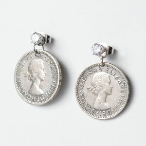 幸せを運ぶシックスペンスコインと、透明度と輝きがきれいなキュービックジルコニアをセットしたピアス。 透明度が高く、輝きに優れたキュービックジルコニアを使用。 また、メインモチーフの「幸せを運ぶシックスペンスコイン」には