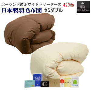 こだわりの国産品。ポーランド産ホワイトグースをセミダブルは1.4kgも使用した高級感あふれる羽毛布団です。品質はロイヤルゴールドラベル、品質保証書付きの羽毛 布団です。かさ高165mm以上でふんわり、側生地も超長でツヤツヤ、最高級