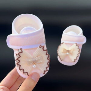 女の子・対象年齢: 6〜12ヶ月・アッパー素材: 綿・靴底素材: 滑り止めドット・留め具: マジックテープ・機能: 滑り止め・デザインポイント: リボン・カラー展開: ピンク、グリ
