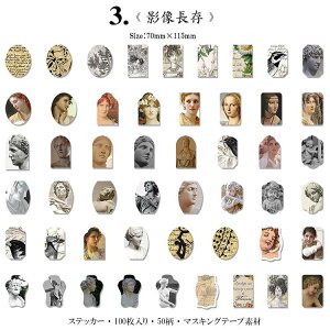 大容量!海外シールセットです。 たっぷり100枚入り、50柄各2枚 アンティーク調、おしゃれでかわいい マスキングテープ素材、程よい透け感が素敵! デコレーション、手帳、日記、アルバム