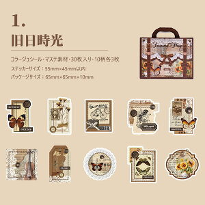 海外 ヴィンテージ感のおしゃれなフレークシールセット。 大きめで存在感抜群,単品でも十分に使える! たっぷり60枚、色んなデザイン入り、とても使いやすい! マスキングテープ素材な