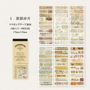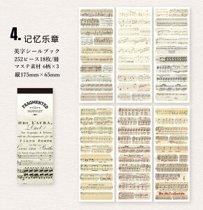 海外コラージュ素材 一冊252ピース 18頁入り、レトロ調英字シール! バラにならず、整理収納が気楽に! マスキングテープ素材、程よい透け感が素敵 コラージュ素材、手