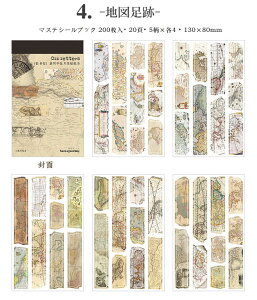 海外コラージュ素材 一冊200ピース 20頁入り、レトロ調英字シール! バラにならず、整理収納が気楽に! マスキングテープ素材、程よい透け感が素敵 コラージュ素材、手