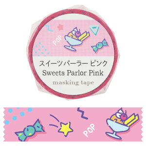 SEARCH WORD:マスキングテープ レトロ ピンク スイーツ キャンディ パフェ 昭和レトロ ポップカラー カラフル デザインマスキングテープ 和紙テープ マステ 幅15mm 5m巻 手帳 ノート...