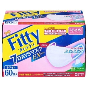 玉川衛材 フィッティ Fitty 7DAYSマスク EXプラス ホワイト やや小さめ 60枚入。マスク内容量:60枚。3層構造で花粉・ほこり。