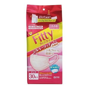 す。予めご了承ください。 名 称 フィッティ シルキータッチ 耳ゴムふわり やや小さめサイズ ピンク 内容量 30枚/マスクサイズ:約14.5cm×9cm 特 徴 ◆シルクの